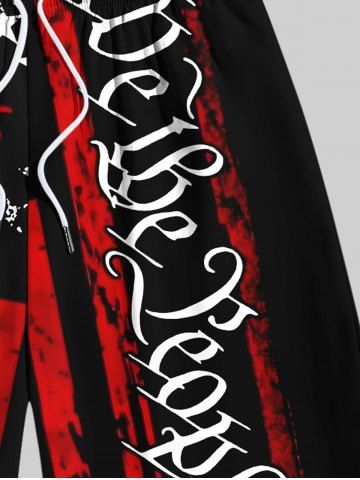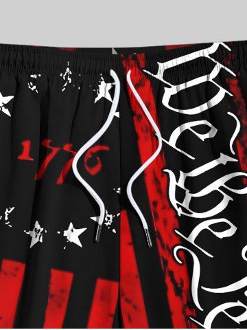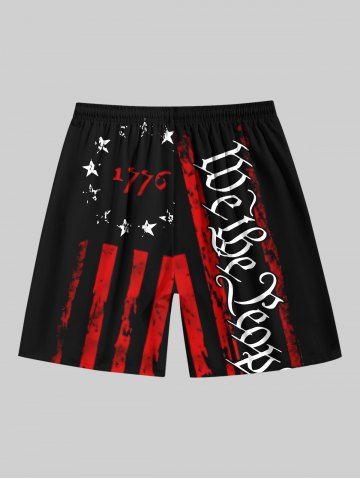 Plus Size Patriotic American Flag Letters Print Beach Shorts For Men - Black - L