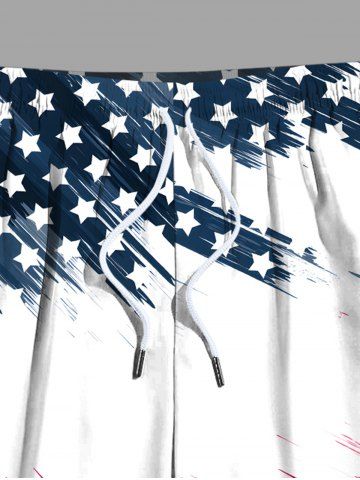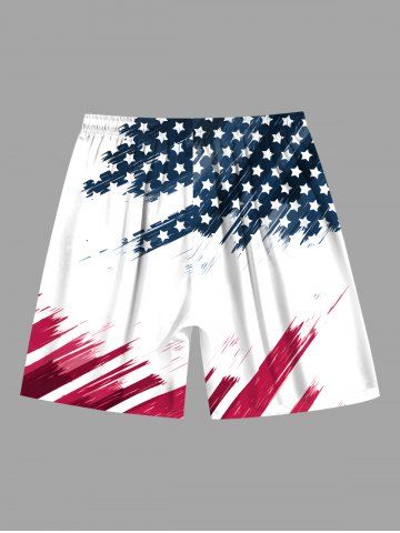 Plus Size Patriotic American Flag Print Beach Shorts For Men - White - M