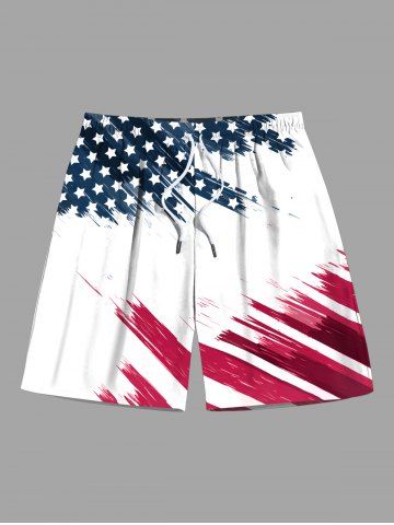 Plus Size Patriotic American Flag Print Beach Shorts For Men - White - 2xl