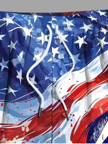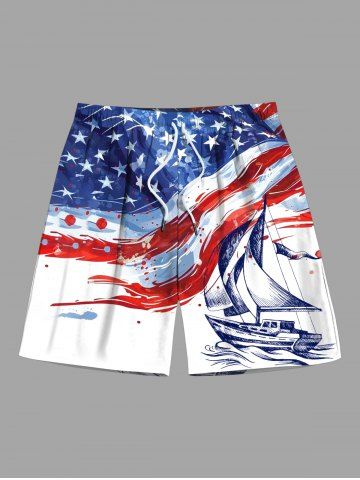 Plus Size Patriotic American Flag Ship Cruise Print Beach Shorts For Men - White - 2xl