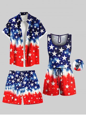 Plus Size Patriotic American Flag Tie Dye Print Beach Shorts For Men - Deep Blue - 6xl