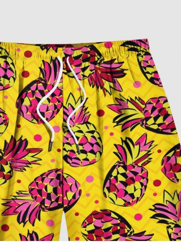 Plus Size Pineapple Dots Print Hawaii Beach Shorts For Men - Yellow - 5xl