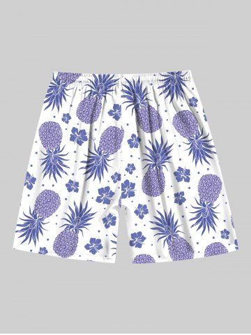 Plus Size Pineapple Hibiscus Flowers Print Hawaii Beach Shorts For Men - Light Purple - 5xl