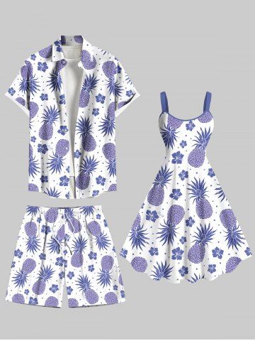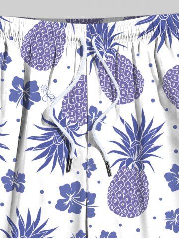 Plus Size Pineapple Hibiscus Flowers Print Hawaii Beach Shorts For Men - Light Purple - 6xl