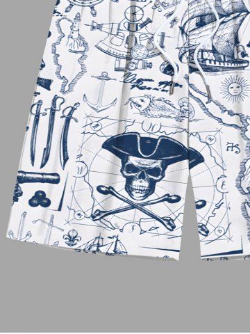 Plus Size Pirate Ship Map Flag Print Cruise Hawaii Beach Shorts For Men - Blue - Xl