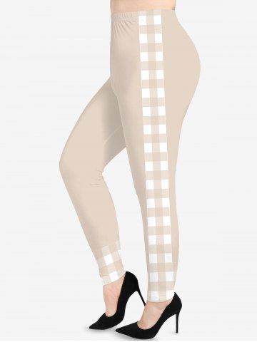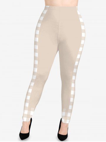 Plus Size Plaid Checkered Colorblock Print Leggings - Light Coffee - 2x