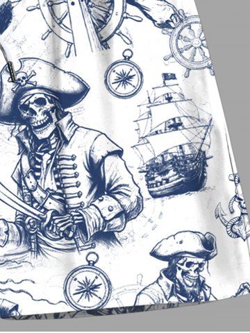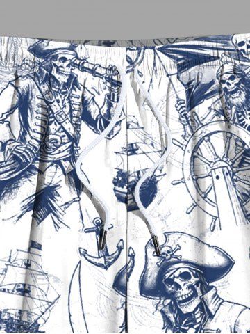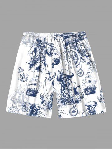 Plus Size Skull Pirate Ship Rudder Cruise Print Hawaii Beach Shorts For Men - White - 2xl
