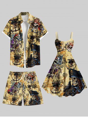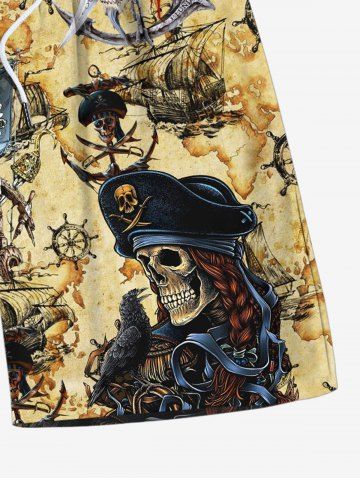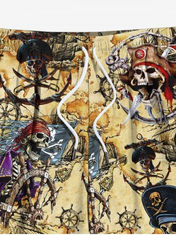 Plus Size Skull Pirate Ship Rudder Map Print Hawaii Beach Shorts For Men - Deep Yellow - 8xl