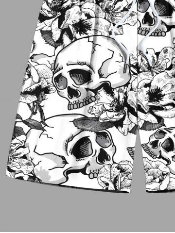 Plus Size Skulls Flowers Print Hawaii Beach Shorts For Men - Black - 3xl
