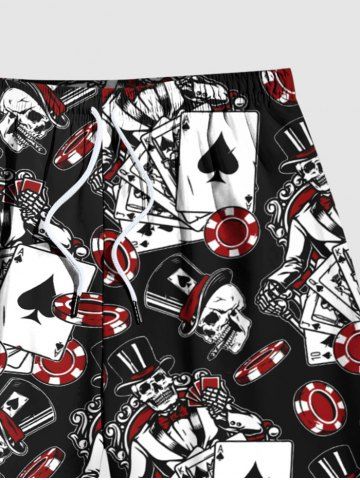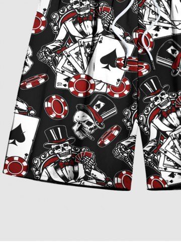 Plus Size Skulls Poker Print Hawaii Beach Shorts For Men - Black - 6xl