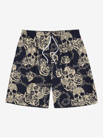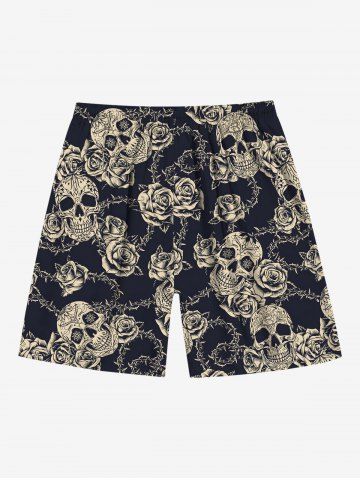 Bottoms > Plus Size Skulls Rose Flowers Print Beach Shorts For Men