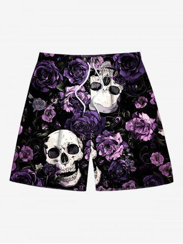 Bottoms > Plus Size Skulls Rose Flowers Print Hawaii Beach Shorts For Men