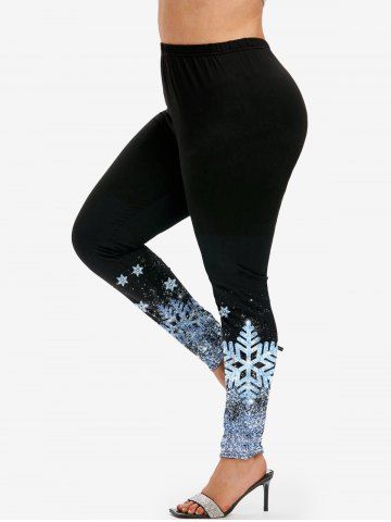 Bottoms > Plus Size Snowflake Print Christmas Leggings