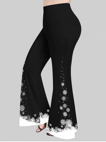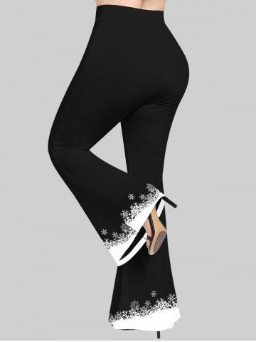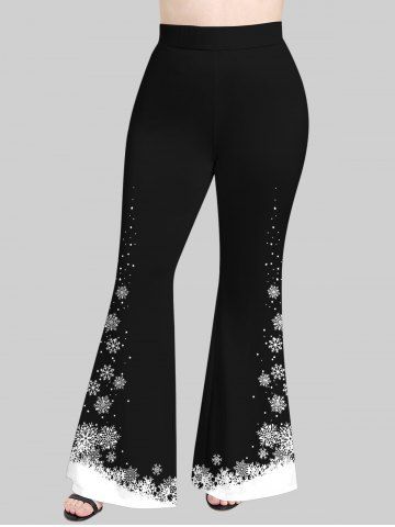 Plus Size Snowflake Print Christmas Pull On Flare Pants - Black - 1x