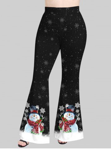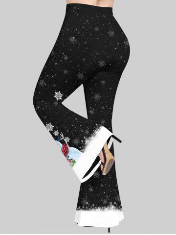 Plus Size Snowman Snowflake Galaxy Print Christmas Flare Pants - Black - 2x