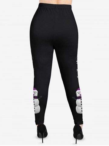 Plus Size Snowman Snowflake Side Print Christmas Skinny Leggings - Black - S