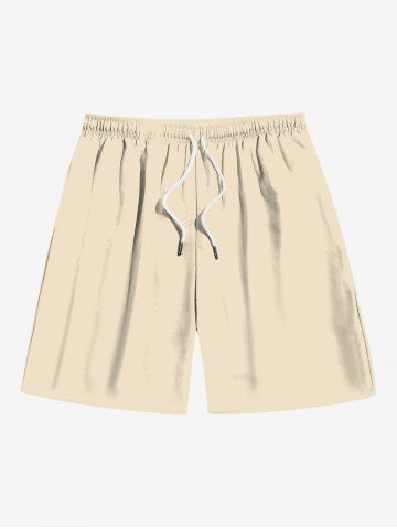 Plus Size Solid Color Drawstring Pocket Beach Shorts For Men - Light Coffee - Xl