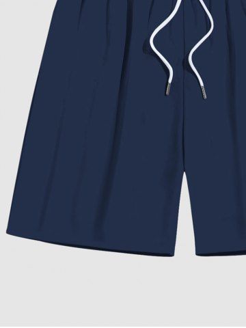 Plus Size Solid Color Drawstring Pockets Beach Shorts For Men - Deep Blue - 7xl