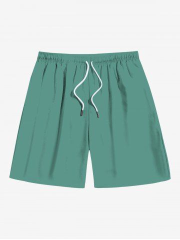 Plus Size Solid Color Drawstring Pockets Beach Shorts For Men - Green - 7xl