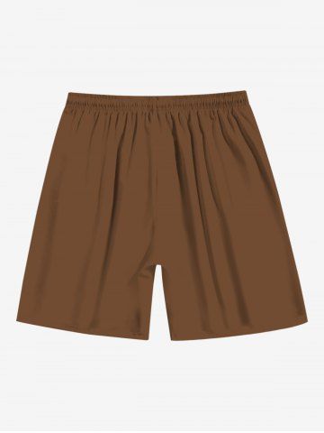 Plus Size Solid Color Drawstring Pockets Beach Shorts For Men - Deep Coffee - 2xl