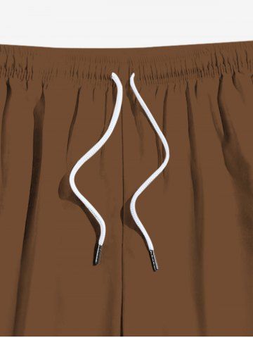 Plus Size Solid Color Drawstring Pockets Beach Shorts For Men - Deep Coffee - 4xl