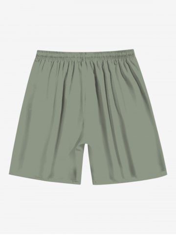 Plus Size Solid Color Pocket Drawstring Beach Shorts For Men - Light Green - 8xl