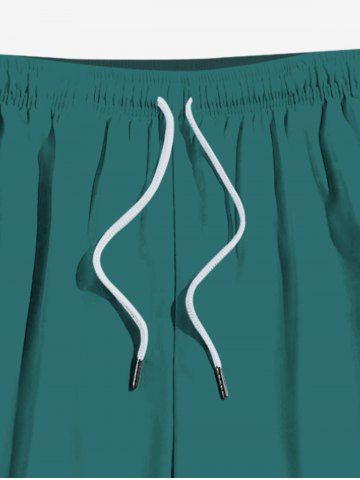 Plus Size Solid Color Pocket Drawstring Beach Shorts For Men - Green - 7xl