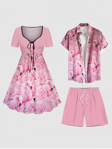Plus Size Solid Color Pocket Hawaii Beach Shorts For Men - Light Pink - Xl