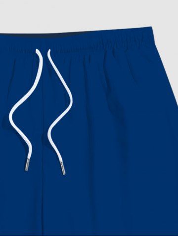 Plus Size Solid Color Pockets Beach Shorts For Men - Midnight Blue - Xl