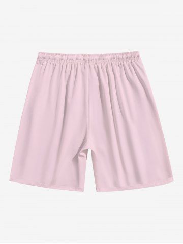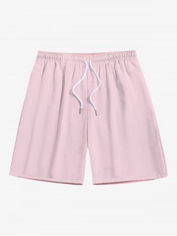 Plus Size Solid Color Pockets Drawstring Beach Shorts For Men - Light Pink - 5xl