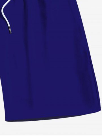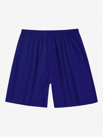 Plus Size Solid Color Pockets Drawstring Beach Shorts For Men - Deep Blue - 4xl