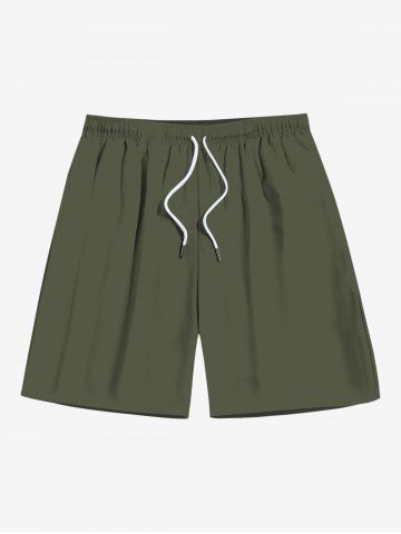 Plus Size Solid Color Pockets Drawstring Beach Shorts For Men - Deep Green - L