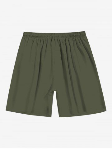 Plus Size Solid Color Pockets Drawstring Beach Shorts For Men - Deep Green - 6xl