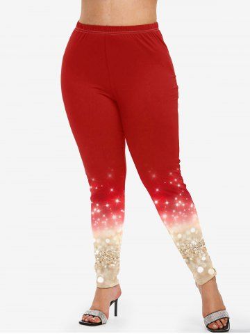 Plus Size Sparkle Print Skinny Christmas Leggings - Red - 1x | Us 14-16