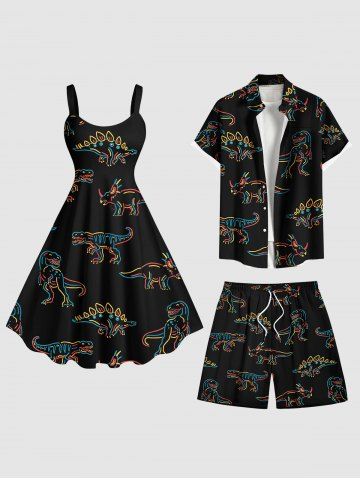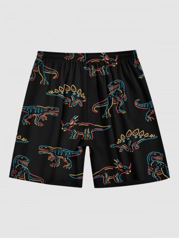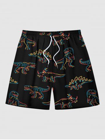 Bottoms > Plus Size Stick Figure Dinosaur Print Hawaii Beach Shorts For Men