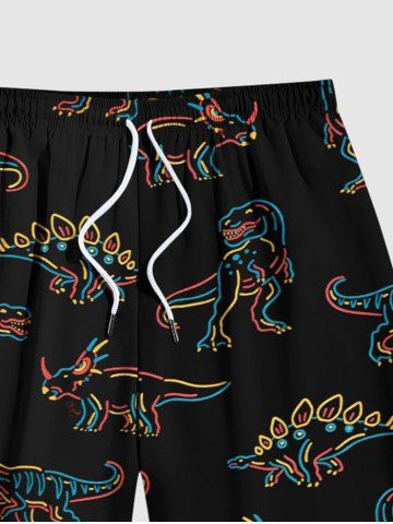 Plus Size Stick Figure Dinosaur Print Hawaii Beach Shorts For Men - Black - 2xl