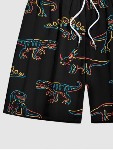 Plus Size Stick Figure Dinosaur Print Hawaii Beach Shorts For Men - Black - 6xl