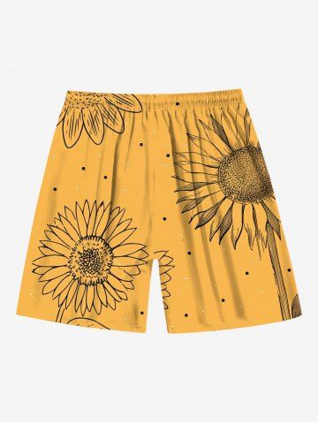 Plus Size Sunflowers Dots Print Hawaii Beach Shorts For Men - Yellow - 7xl