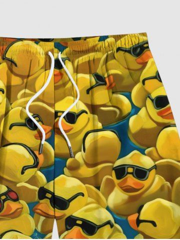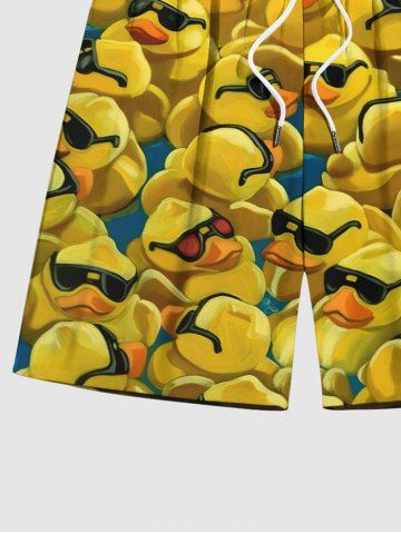 Plus Size Sunglasses Rock Ducks Print Hawaii Beach Shorts For Men - Yellow - 8xl