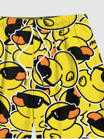 Plus Size Sunglasses Rock Ducks Print Hawaii Beach Shorts For Men - Yellow - L