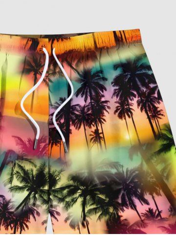 Plus Size Tie Dye Coconut Tree Print Hawaii Beach Shorts For Men - Multi-a - Xl