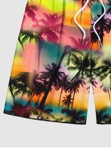 Plus Size Tie Dye Coconut Tree Print Hawaii Beach Shorts For Men - Multi-a - 2xl