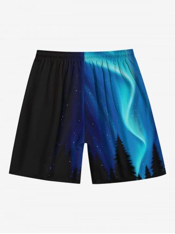 Plus Size Trees Galaxy Star Print Hawaii Shorts For Men - Black - 3xl