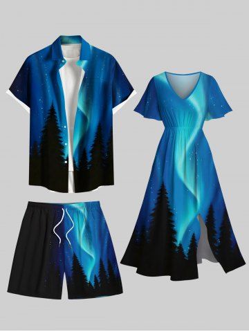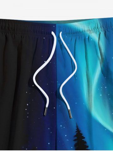 Plus Size Trees Galaxy Star Print Hawaii Shorts For Men - Black - 6xl