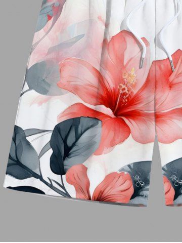 Bottoms > Plus Size Tropical Flower Leaf Print Hawaii Beach Shorts For Men
