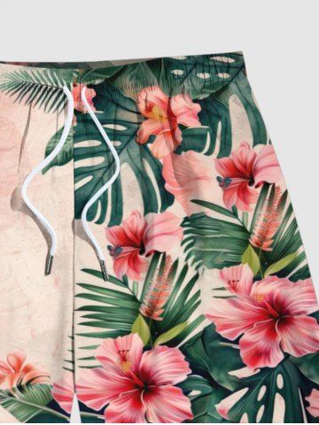 Bottoms > Plus Size Tropical Hibiscus Flowers Leaf Print Hawaii Beach Shorts For Men