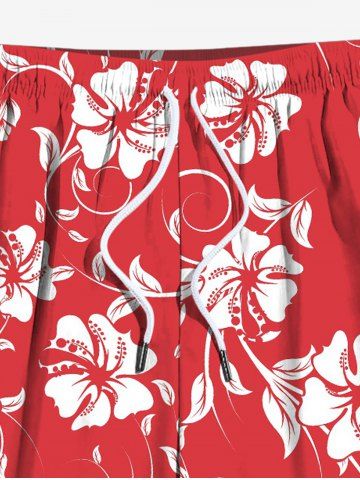 Plus Size Tropical Hibiscus Flowers Print Hawaii Beach Shorts For Men - Red - 4xl