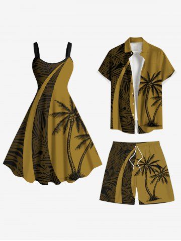 Coconut Tree Tropical Leaf Print Plus Size Matching Hawaii Beach Outfit For Couples