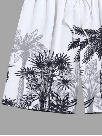 Plus Size Tropical Leaf Coconut Tree Print Hawaii Beach Shorts For Men - White - 5xl