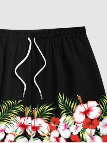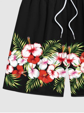 Plus Size Tropical Leaf Flower Print Hawaii Beach Shorts For Men - Black - 6xl